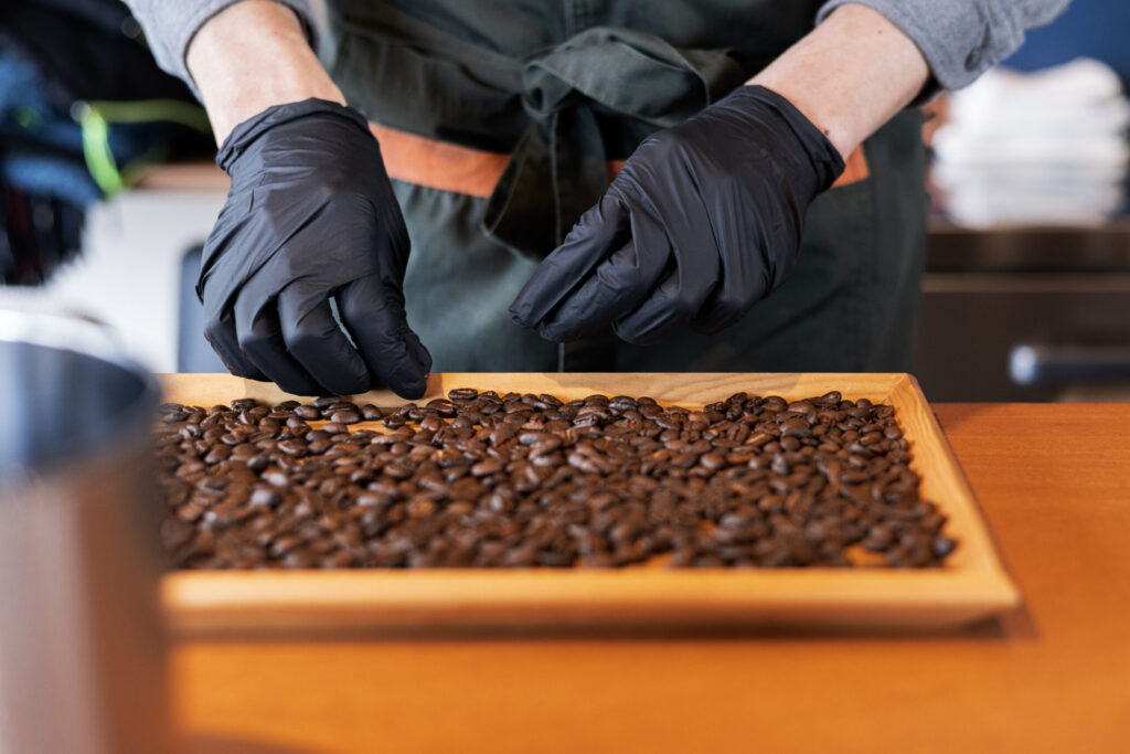 焙煎前と焙煎後、2回のハンドピックで欠点豆を丁寧に取り除いています