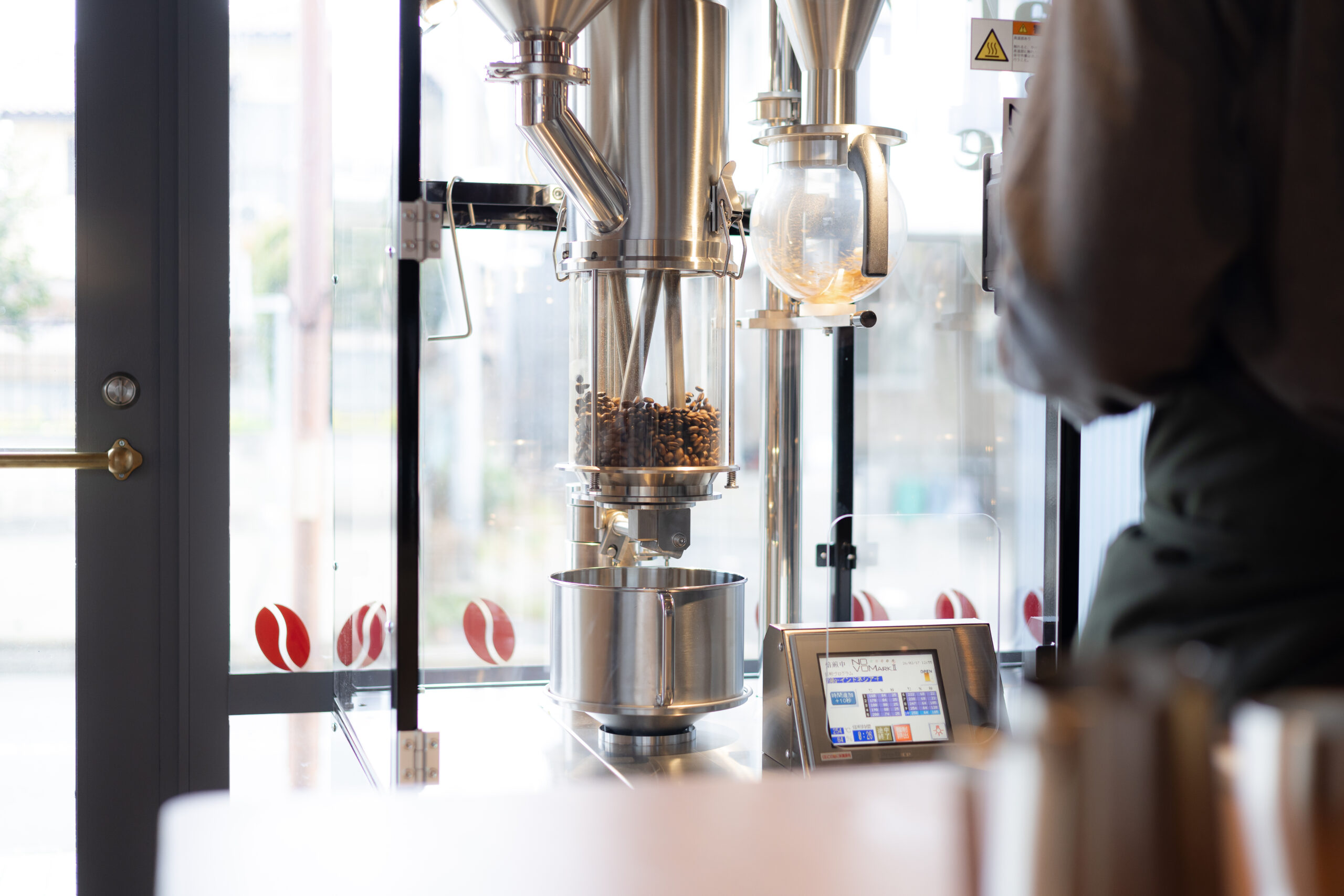 当店では、京都生まれの電気式熱風焙煎機「NOVO MARKⅡ」で焙煎しています